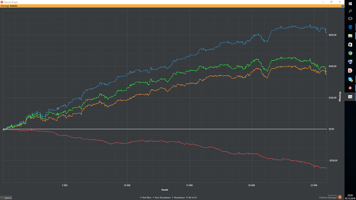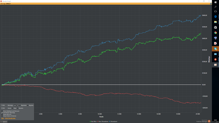 1 ) оппу на ривере доехала топ пара , при моем блеф кече . + а) это мелочь , проплатил всего 2 улицы б) неужели опу не может ничего доехать ? 2 ) злюсь на дураков, потому что сам дурак , играл без мозгов . Дурак злиться от того , что к нему со стороны судьбы нет внимания . Умному внимание ни к чему , он самодостаточен . Индикатор дурака -- НЕ самодостаточность . 3 ) месть вызывается тем , что человек боится , что попадет под контроль другого оппонента ( месть , это защтная реакция на это ) . На самом деле ему до него глубоко наплевать . Если вошел в состоянии мести против конкретного оппа , сразу нужно ставить цель : как можно меньше ему проиграть , выкидывать карты на его чекрейзы и не проплачивать ривер . Месть необычайно опасное состояние в картах , чел . начинает играть совершенно без головы , что приводит к тилту , который в свою очередь вызывает другой тилт . Тилт из-за тилта . Не связывайтесь с тем . которому вы хотите отомстить , выиграете у других оппов . ( пример с Пашей , питерским каталой ) 6 ) Не могу терпеть , когда нет быстрого результата . а) Вика б) хочу поскорее запрыгнуть обратно на прежний ( высокий ) уровень жизни . вывод - неторопись Виталя , не торопись 7 Инвестиции за игровой стол -- инвестиции в будущий Успех. 8 ) ведение блога , это огромное плюс ев 9 ) если меня переехали , нужно говорить ,- О , это мой клиент , теперь он от меня ни куда не уйдет ( Пример с пашей питерским AKs -- флоп 89K) . 10 ) нужно обязательно прописывать в дневнике после сессии ее разбор , уже были случаи когда это помогло необыкновенно ! 11) когда тщательно прописываю , выводы из проведенных сессий идут положительные восстановительные процессы в животе ( приятные ) 12 ) один раз не прописал перед сессией выводы работы с дневником , сессия оказалась скверной 13 ) играй виталя в А игру . Корсик говорит , что в покере выиграет тот , кто лучше друших играет в А игру . Не расширяй префлоп рейз 14 ) оппы за 2000 раздач ошибаются 4-5 раз на стек 15) Не считай что у оппа слабая карта , если в режиме чек кола не вскрывай ривер , чаще там карта будет , если закрылся флеш на ривере и летит от оппа донк , фолди Виталя , фолди . 16 ) Мы восклицаем ,- этого не может быть ! Нужно говорить,- если это случилось , то это имеет место быть . Такой фразой можно подготовить себя к дисперсии в будущем . 17 Нужно обязательно больше получать знаний и тогда будет преимущество над фишом в том числе из-за меньших срахов в тех или иных ситуациях за покерным столом . Фиша же наоборот , эти страхи сожрут и превратят в обезьяну . 18 ) огромны прорыв в покере пошел , когда начал учиться +++ EV ! 19 ) при абстрике и тилте , нужно глубоко дышать , высвобождать в голове пустоту , которая позволяет логически думать .20 ) я злюсь на дураков , потому что я думаю , что играю круче их , на самом деле не знаешь с кем играешь 21 ) нельзя допустить , что бы первая ошибка вызвала за собой вторую , третью .... череду ошибок 22 ) Если меня часто три бетят , значит оппам так часто заходит карта ( Ривернадц , просмотрел свою базу на 100 000 рук и обнаружил , три бет против него 10 % , что входит , в средний три бет ) 23 ) не уходи со стола , если тяжело , нужно продолжать играть , хотя бы 10 минут 24 ) обязательно нужно ставить оценку после ессии ( если по деньгам проиграл , а сыграл хорошо , хорошая оценка поднимет настроение и не даст пытаться перестраивать игру , когда это вообще не нужно 25 )