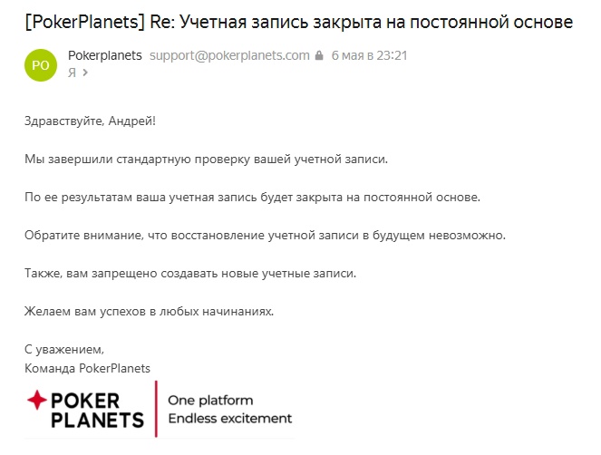 Друзья, кому то приходило такое письмо? Не дают депозит делать и выводить деньги. Не понятно почему заблокировали. Я только установил и чуть чуть поиграл и всё.