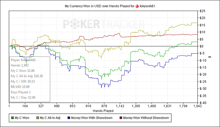 SB: $1.91 (VPIP: 13.64, PFR: 13.64, 3Bet Preflop: 0.00, Hands: 22)