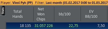 В марте очень хотелось бы показать винрейт не меньше 10 ev/bb на сотню. Буду стараться меньше ошибаться.