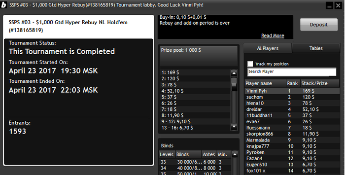В четверг я так понял была профилактика с утра и на бвине, и на старзах, в итоге не стал грузиться вообще. Пятница, суббота, воскресение отмечал д.р. жены. Ну, а вчера чутка подзалил на старзах и сыграл почти в ноль на бвине. Так же вчера обнаружил интересный турнир за 11 в 19:00 , решил внести его в расписание.