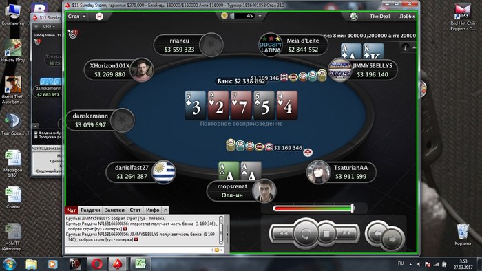 Всем привет, давно не писал,,отыграл очень даже хорошо,,после 200 турниров, банкрол ,430$ ..заатщил поляну на 1200 правда с дележкой))так как кроме марафона ничего не катал не было времени, как обычно пришлось сделать кэшь аут..сыну нужна коляска)))эх...в итоге -300$ и банкрол снова 130$.. вот так вечно у меня и происходит не могу прыгнуть на лимиты по выше..но я продолжу катать..в стране все равно работы нет)))Белорусы поймут)))