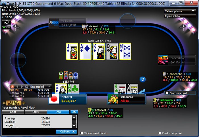 Постигнув дзэн Фортуны, выходим на Ха с самым слабым игроком (сильных мы то уже выбыли Силой Великого Лака,) со стеками 10к1 в нашу пользу, даем ему несколько раз удвоиться, а потом мощно пробиваем под дых Силой Лакожопа: