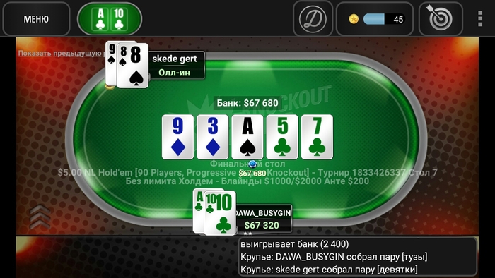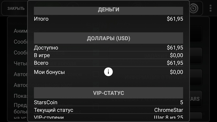 День 5. Очень разнообразный сыграла около 40 турниров , много слито , попадания в призы , и самое приятное топ1 в кнокауте за 5$. Общий итог за день+101,25$ Вывела 90$ Оставила на игру 60 с копейками