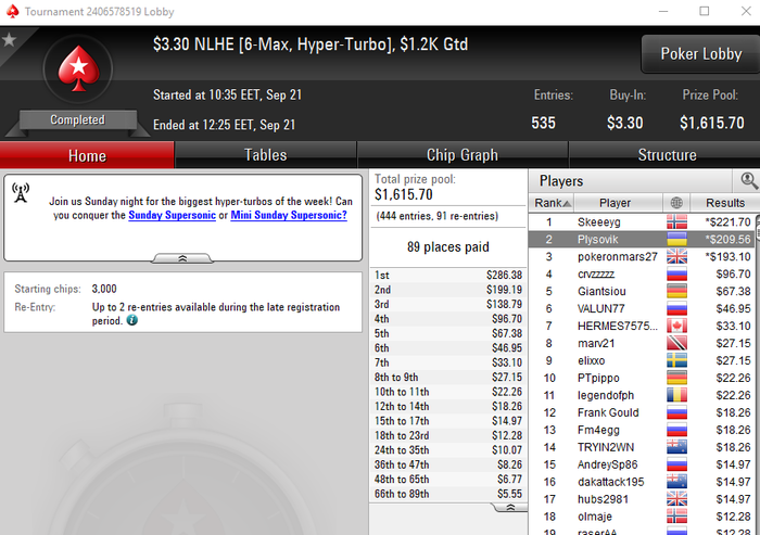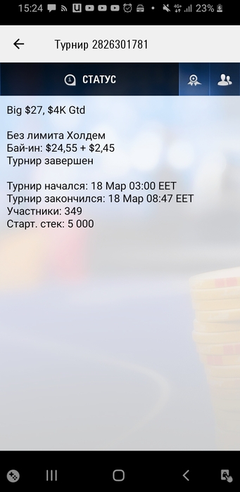 Да, да, я ничего не перепутал, я играл две финалки одновременно. И я вам скажу, думаю это мне стоило минус в профите. Второй турнир это мейн на громпокере за 3тыс.грн(примерно 120долларов-отобрался через сателлит). Этот турнир начался в 19.00 по Киеву 09.02.20. А второй на старзах в 23.30.