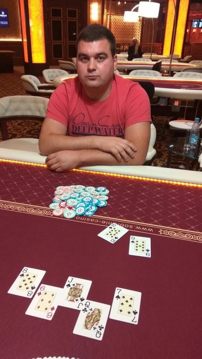 Победитель Турнира 30 августа в Покерном клубе казино "SOBRANIE"! В турнире приняло 18 участников, и 2 RE-ENTRY. 1. Место (538 у.е.) Алексей Ч. 2. Место (400 у.е.) Евгений М. 3. Место (266 у.е.) Гарри А. 4. Место (196 у.е.) Евгений Д.