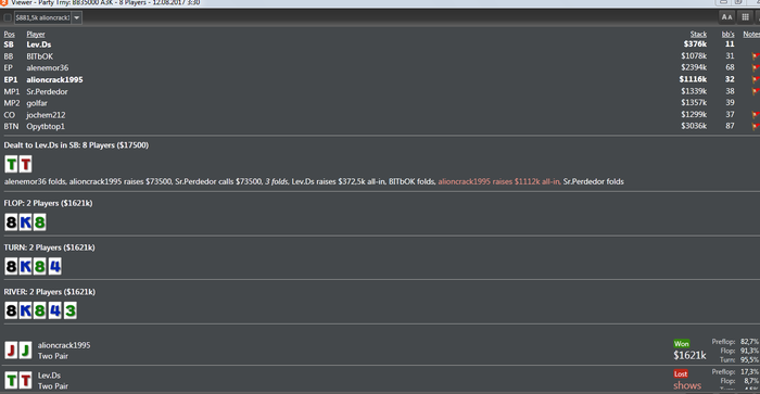 Довелось сыграть в дипстеке за 8,80 против ТСа такую нелепую с моей стороны и странноватую со стороны ТСа раздачку: