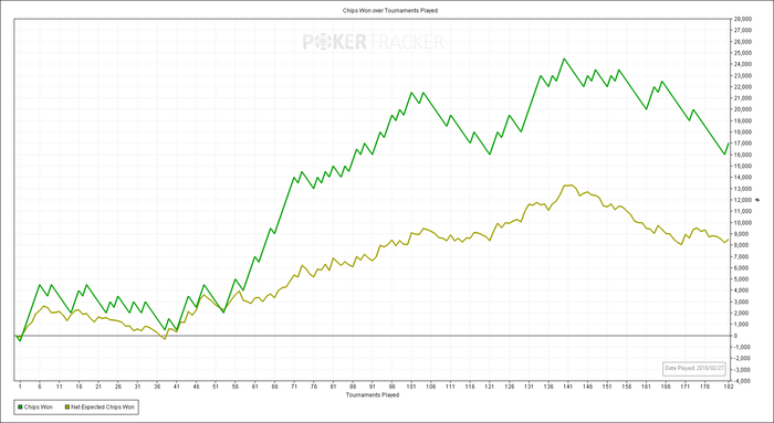 4. Отчёты по дням будут тут, может не каждый день, но по каждому сыгранному или не сыгранному дню точно. Вопрос: как выкладывать результаты, что бы было видно количество турниров, но не было видно профита, т.к. профит не хочу смотреть. Я думал выкладывать график в фишках например, но не знаю как убрать вот это полупрозрачное окошко, в котором виден профит.
