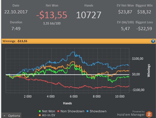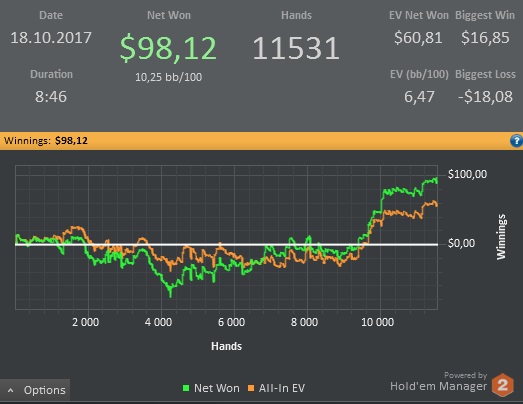 Results: $38.03 pot ($1.50 rake) Final Board: Hero showed and won $36.53 ($17.74 net) UTG+1 showed and lost (-$18.79 net) BTN mucked and lost (-$0.40 net)