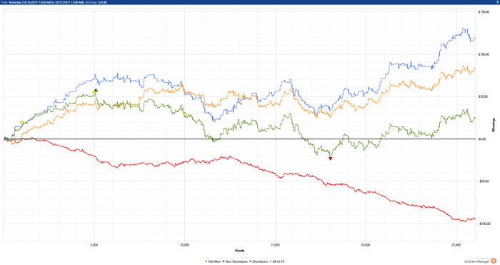 Quiet, ничего не менял, скорее всего НЕМНОГО привык к кол-ву рук в час, решения стали более адекватные. ибо первые полтора-два часа вообще не понимал что происходит, т.к. моя стандартная игра - 600-700рук в час. играл с 9-30 до 00:45