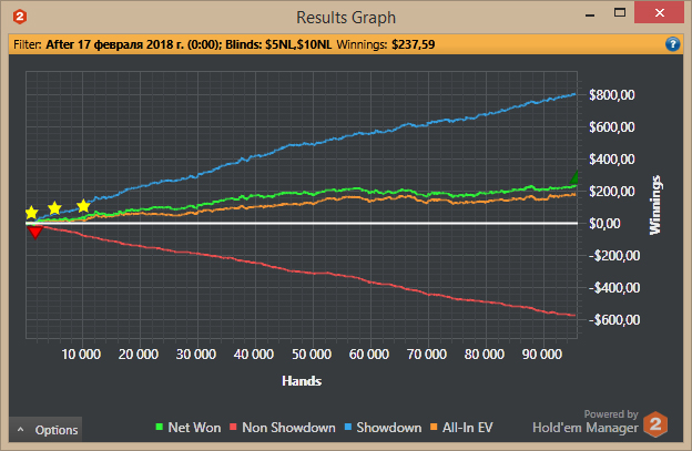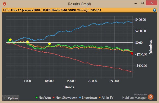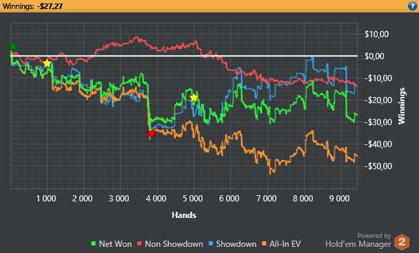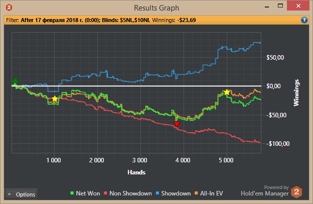 . Грусть, печаль, тоска и уныние. Времени заниматься покером вагон, но таланта явно не хватает. О кэшаутах пока речь не идет, пока не закреплюсь на 10ках, а лучше на 25ках к концу года. Никак не пойму поле нл10 (сх пс). Фишей по сравнению с нл5 явно больше, но никак не могу выработать страту игры хотя бы в 0.