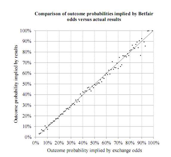 собственную вероятность матча (исхода). Этим занимаются аналитики. И, как уже отмечалось, если взять много исходов с одной и той же собственной вероятностью, и, имея на руках "много", посчитать настоящую вероятность-частоту, то она окажется равна "нереальной" собственной. Букмекеру больше и не надо, он рассчитывает на легкомысленную толпу.