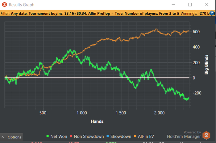 Мини отчет за последнее время) график от даты последнего отчета ниже. Мало катать получается(( три дня выпало из-за поездки, еще дня три из-за дней рождений в окружении, после которых нужно было еще отходить) Ну и количество турниров в день уменьшилось, еще снизил количество столов до 9, иногда 10..Старался больше упор делать на концентрацию внимания, потому когда устаю, заканчиваю сессию, в то время как раньше был четкий план на 100+ турниров в день, сейчас получается 80-90..Последние 5 дней играю только 7й лимит с рекомендации тренера, как обычно 6мах турбины и 18ки. Посмотрю, как пойдут 18ки, есть сомнения на счет них, тем более на трехах вот такая фигня была в префлоп выставлениях на бабле и в итм (график с фильтрами ниже). В плане обучения есть куча компонентов над которыми еще долго буду работать. А вообще скучный период такой, уже хочется весны и лета)) теперь нужно заработать на весенне летний период путешествий) уже есть куча планов, хочу на байдарках почаще ходить + в горы хочется, ни разу не ходил в горные походы и по традиции весной сьездить на недельку на остров Джарылгач... [attachment=545920:Screenshot_472.png]
