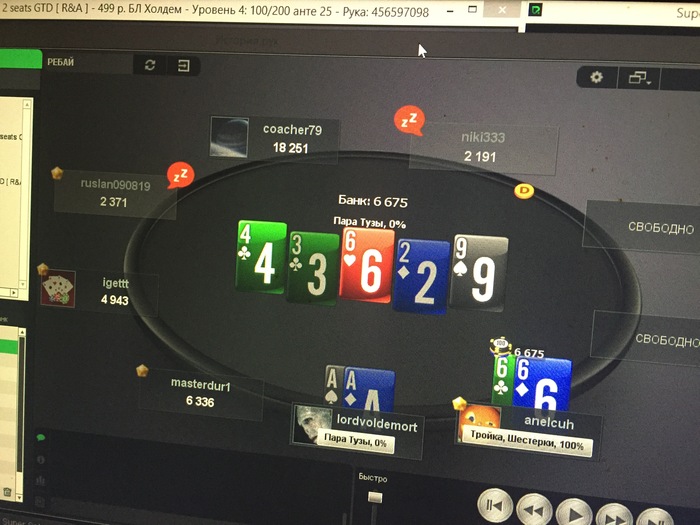 Девятым отъехал, допустил ошибку, на опен с виду нитового парня, запушил 22бб с 66, против агро и фишей пуш окей думаю, но вот тут явно косяк, надо было падать и были бы шансы.