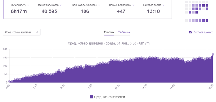 Теперь немного о твич-канале. Вести стримы очень нравиться, канал по немногу растет, уже собрали немногим больше 500 фолловеров и последние дни стабильно держу отметку в 120+ зрителей(после первого часа трансляции). Хочется верить, что смотрят меня не только ради более менее неплохих результатов, а и потому, что сам стрим я веду интересно. В любом случаем спасибо тем кто поддерживает, смотрит, проявляет активность в чате.