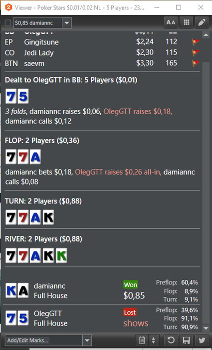всем привет.воскрешаю бортовичек.тренерский пакет доиграл в слабый плюс. теперь ленюсь и играю от себя дешевый кэш и мтт до 5$ теперь будет много мата переездов и иногда скрины заносов,но это не точно