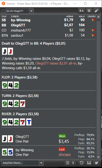 всем доброго утречка. бортовик совсем позабросил. но с покером не завязал.продолжаю бороться))винрейты подросли и пошли результаты. и еще раз огромный респект Мите то что продолжает терпеть меня лентяя