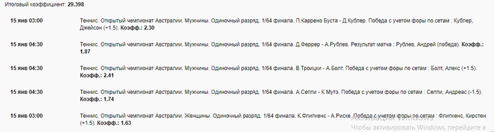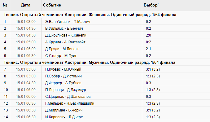 Выкладывать описания буду только на теннис с января начиная с турниров в : Брисбене ,Чинае ,Дохе ,Окланде.