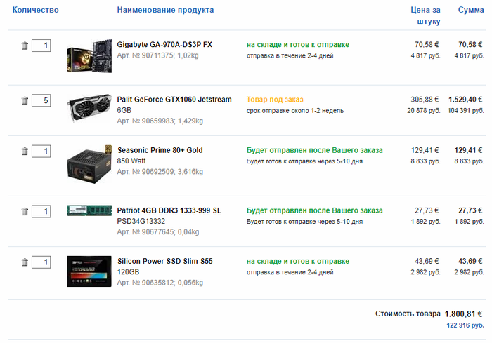 CHbI, в расчете не было целью указать 100% железо на котором будет собираться ферма (говно железо, которое без гарантии и которое будет впритык тащить ферму я брать не буду)