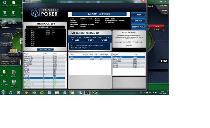 on1god, согласен, что это не правильно. Если ты про скрин с NetBet, то там за билет зашел, а если про BlackChipPoker, то Да, КАЮСЬ))). Знаю, что это не правильно, но меня привлекла поздняя рега и кол-во народу. И мне нравится пуш-фолд период. Вот и нагрешил))). НО теперь буду держать себя в руках. Ну и также продолжу фрироллы и мтснг за 0,55$, хотя эти мтснг тоже дороговаты, но другого дешевле ни чего нет.