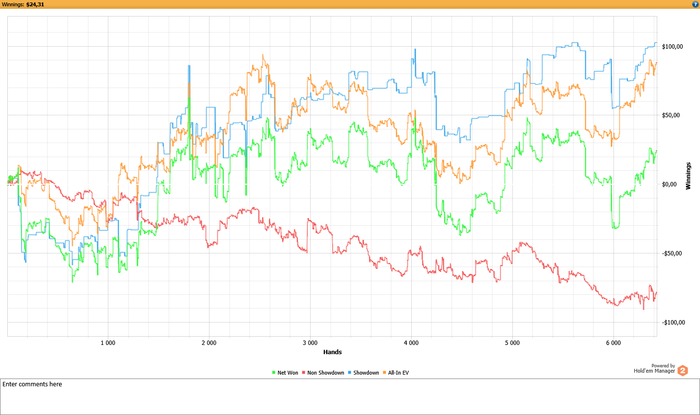 Сегодня словил какие-то качели, то меня переедут, то я перееду. В целом сильно не везло, но вскрыл вагон блефов и в плюсе остался. Норвежец, зараза, протрезвел и уже не отдавал деньги так оголтело)))