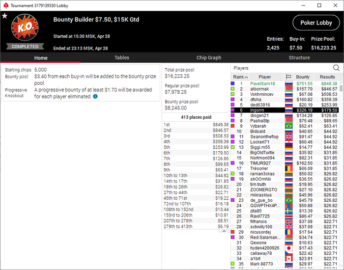 Итог по вчерашнему дню: PokerStars -24$ PartyPoker -13$