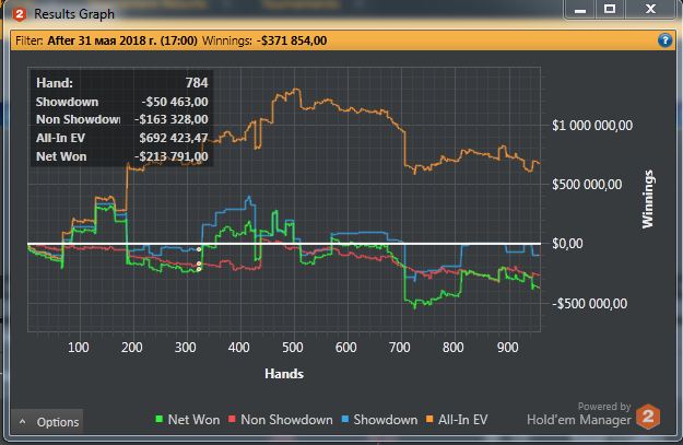 Вчера сессия не удалась, играл достойно и в итоге ушёл в тильт на бабле депстека за 2 бакса на пати). С Дамами выставился против 84 и проиграл сету четвёрок) Забавно конечно, когда ты вскрываешь блеф 4 бет пуша и умудряешься проиграть)