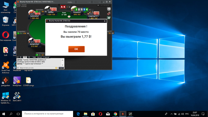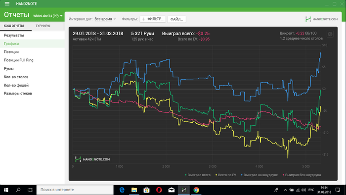 Хай.Апрель месяц был провальным в плане отсутствия времени,побаловался турнирами для ознакомления,спины,сит энд го,МТТ.Отвлекаться на них больше не собираюсь. В мае: - хочу увеличить количество играемых столов до 2-х.Увеличу и количество раздач.2 маловато конечно,но не все сразу. - увеличить банкролл на 5$+++.
