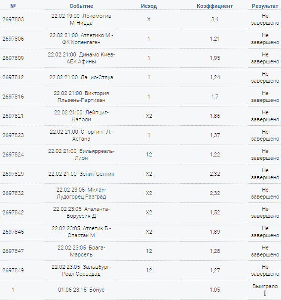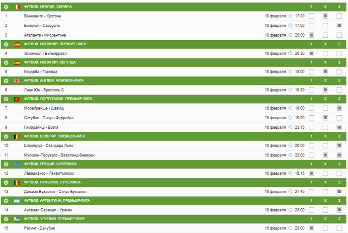 Ну вот, как я и говорил, очень сложный для меня тото сегодня, первые 2 матча проиграны на последних минутах матча: Беневенто-Кротоне мой прогноз Х, но на 89 минуте Беневенто вышел вперед, так же и в матче Болонья-Сассуоло, где стояло Х2, на 88 минуте Болонья забила. Джек снова мимо, теперь главное скатать не в минус.