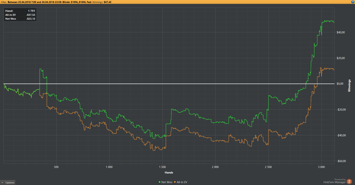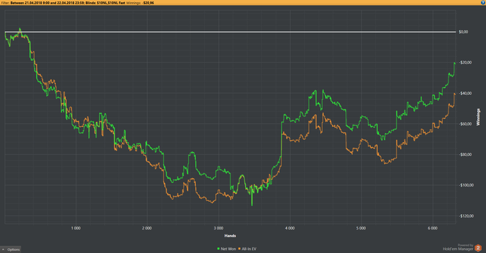 Уже второй раз жестко стрикануло,причем именно на лимите 10$...Вчера улетел на 10БИ.Но взял себя в руки и сегодня практически отыграл минус. Продолжает штормить,но терпим и поднимаемся.Апрель сурово проходит.И самое печальное,что вот такие волны мешают показывать А-игру.Ладно еще есть неделя в апреле,так что надеюсь выведу месяц в неплохой плюс.