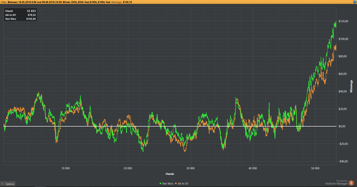 Друзья,вновь вернулся на форум!)Долго не отписывался,так как было много хлопот вне покера... На счет игры,то в начале месяца попал в жесткий даунстрик...Слил немало БР.Пришлось вернуться на лимит ниже.Сейчас вроде как устаканилась игра ,птьху птьху птьху...