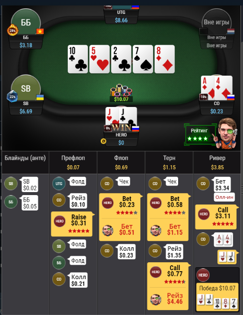 3 беты и защиту на 3бет из него брать не советую, потому что то что есть в реальной игре и то что он предлагает это две большие разницы.
