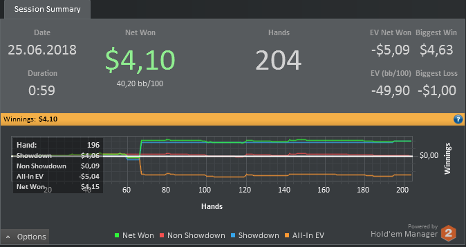 Как и планировалось отыграл 200 рук с результатом +2,09$. Завтра продолжим бомбить в том же темпе!
