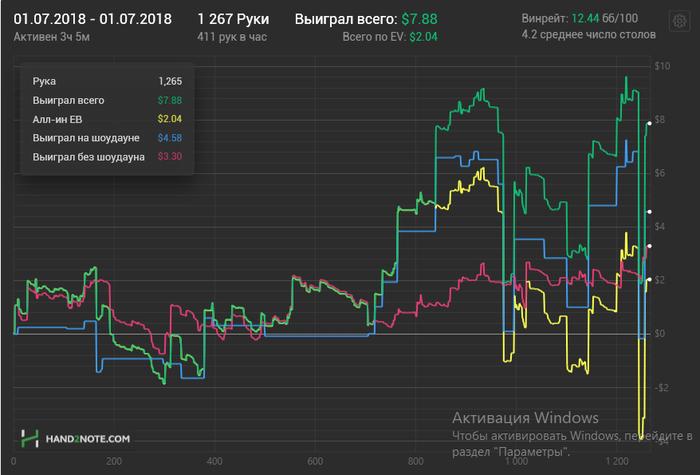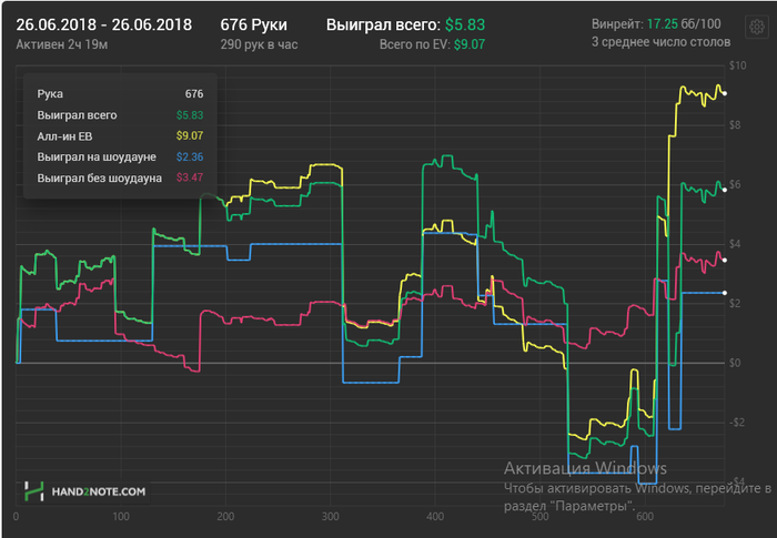 В покере, тоже, дела обстоят неоднозначно. Цель в 600 рук успешно выполнена, чувствую, что игры не хватает, поэтому на следующих выходных буду добавлять еще. Потихоньку привыкаю к новому софту.