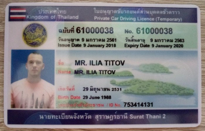 Переходим к практике! На нее я приехал уже на следующий день. Приехал на своем авто (так все тут делают). Машина у меня старая Фольтс, которому двадцать лет. Сломаться может, что угодно и когда угодно! Так и произошло. Выехав на полосу препятствий, я по команде заглушил двигатель, а завести смог только минут через пятнадцать. Потом, Тайцы смеялись над тем, что у меня не работал левый стеклоподъемник, над свистом гура и громыхающими стойками. Выполнив все упражнения, я вышел из авто и отправился получать права. С меня взяли обещание, что я не буду ездить на этой машине. После чего отвели в специальную комнату, где сделали фото и выдали водительское удостоверение. Как вы поняли эти права получить очень легко. А действуют они почти везде. Так что тем, у кого нет прав, очень рекомендую потратить пару дней и получить их в Таиланде!