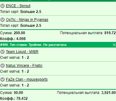 тогда поставлю на матч optic - nip победа nip 2-1 кэф 4.45