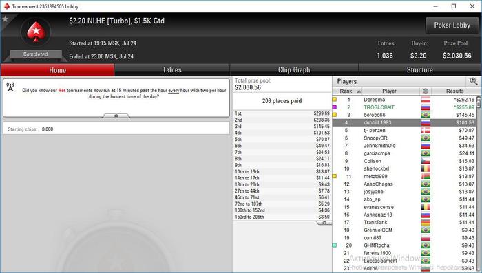 У нас пока затишье, кто-то ездил на юбилей, у кого-то личная жизнь, отыграли не очень много, выдающихся результатов нет. Сейчас очень активно катаем сателлиты во все подряд баунти турниры, постоянно проходим то в 11, то в 16.5, то в 22, то в 33. Самое классное, что пару человек выбиваешь и уже в плюсе. Но не везёт в ключевых сравнениях, надеюсь это скоро пройдёт и случится мега занос))