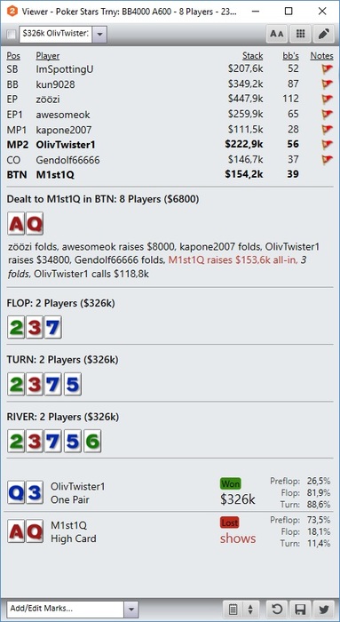 Вчера занести не вышло, вышло сегодня! Немного испортил нам статистику, взял второе место, а не первое как обычно). Но я всяко доволен, поправил БР, а то лил 5ть дней подряд. Ну и неприятная раздача для одного из оппов за финалкой, я сильно матерюсь когда меня так угревают.