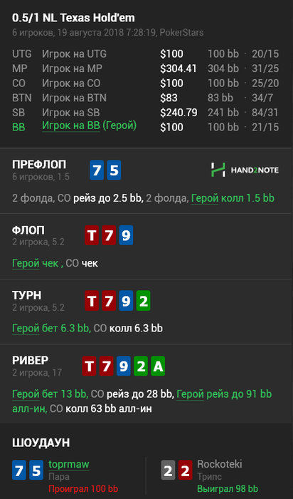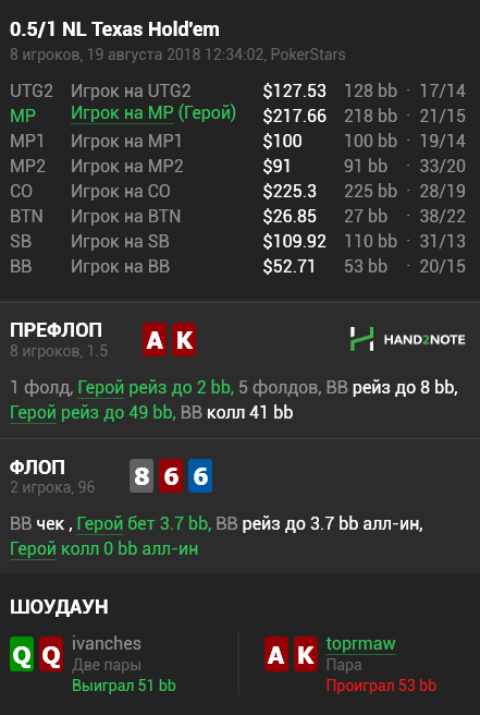 Обожаю таких. Сначала делает непонятный рейз, потом думает весь тайм банк видимо кусая локти от своего рейза. Если уж сделал так, то и колл жми сразу. Такое ощущение что люди нихера не планируют свои розыгрыши.
