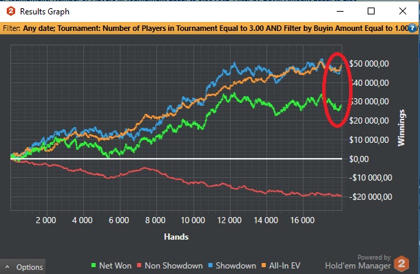 Попробуй не обращать внимания на результаты. установи себе планку, скажем хотя бы 500 турниров, без просмотра резалта(при условии что бр позволяет) и ебошь. Ты удивишься, как легко начнут проходить сессии Удачи.! И эт, забей ты на чипЕВ на таких дистанциях, ты в могилу себя сведешь