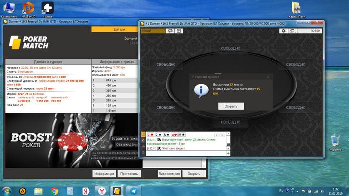 Добрый день! Вчера сыграл фриролл на 4202 ) человека от известного шоумена Дурнева на Покер Матч ну деньги очень маленькие а вот занятое 22 место расцениваю как не плохой результат. Уже есть "деньги" на игру в сателлитах . PokerKing Venom вылетел с 3 ступени . Будем пробовать дальше!