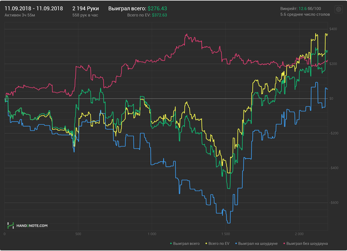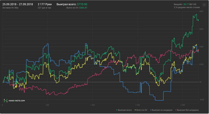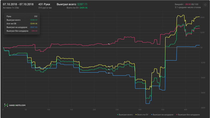 Давно такого не было, временами творю откровенную дичь, временами ее творю не я, но проигрываю совершенно одинаково. Последнюю сессию на ПС попустило, да и то недодало 200 с лишним бб, но хоть в целом в плюс. Сюда попала часть вчерашнего дня, влом делить по часам, пусть такой график лежит.