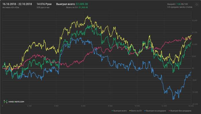 О покере рассказывать нечего, итого с начала катки 25к рук и -2.5к баксов :) Печальный результат, буду надеятся исправить это.