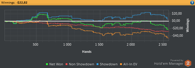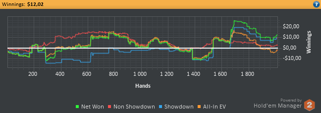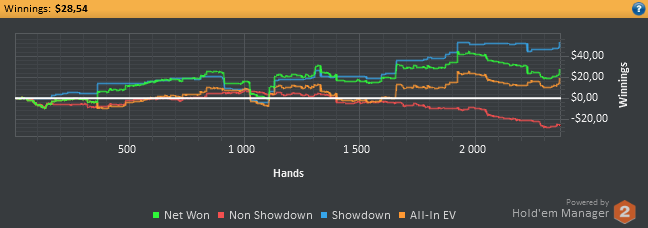 Количество рук: 2369 Профит: 28,54$ Винрейт: 12,05