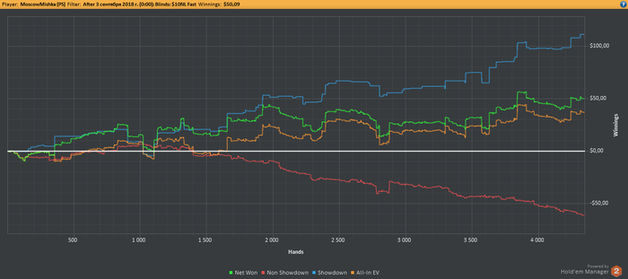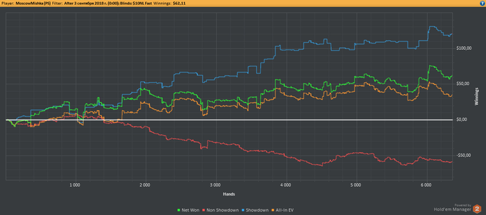Сессия №3: Сегодня сложная была сессия, раздали КК в АА без вариантов на отскок, ни разу не попал в сет по флопу. Но отыграл охуительно, по ощущениям только пара спорных раздач, которые нужно потом разобрать. Ну и несколько выигранных банков нужно тоже будет проанализировать.