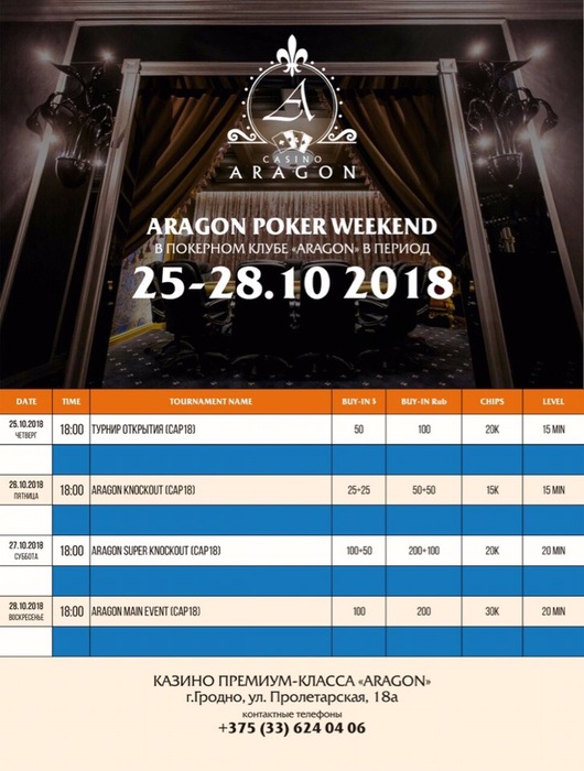 Есть еще хорошая новость по поводу проведения серии Aragon poker weekend. Напомню, что серия пройдет с 25 по 28 октября. И мы введем рейтинг игроков турнирной серии.