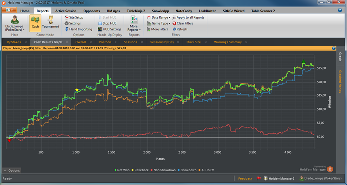 Кулернуло не хило, 5 раздач с сетом на флопе выставлялся с сетом и проигрывал старшему сету и ещё много каких переездов было, сегодня плотничком заниматься буду, может к вечеру катану 1000 рук, посмотрим что выйдет.
