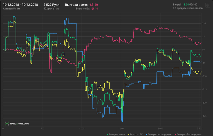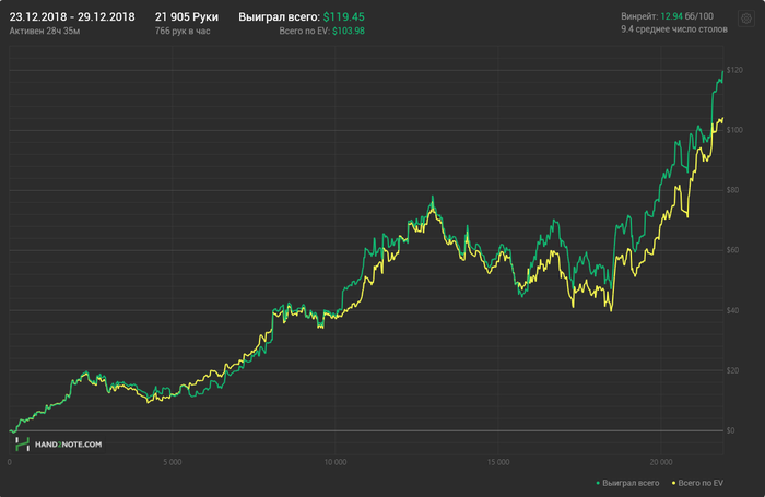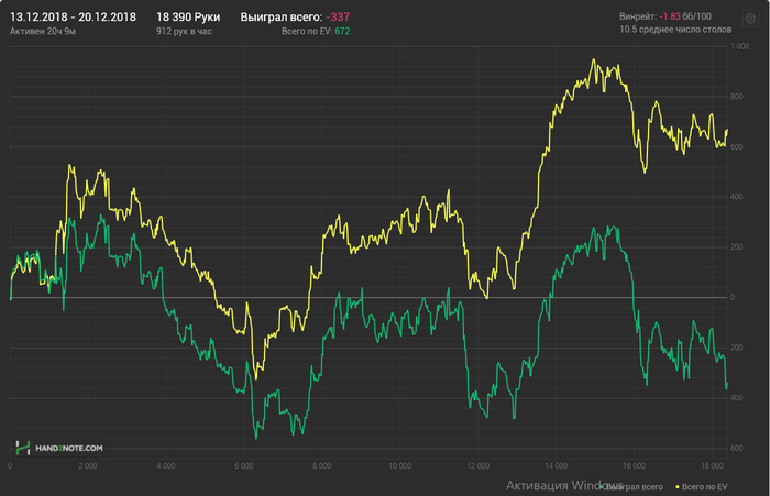 И вот, спустя год, я снова здесь. 2019-й был одним из самых трудных. Если вкратце, январь, февраль и начало марта катал МТТ (то что я писал год назад, типа времени тратишь "чуть больше", полное дерьмо), это ебучий марафон поедания гавна, так что в начале марта я снова открыл кэш столы, но катать не смог. Сесси заканчивались на первом же проигрыше малейшего банка, тильт, и закрытие столов. Не мог понять, в чем дело, пока не осознал, что сажусь за столы не играть, а конкретно заработать денег. Плюсом к этому, пришло осознание того, что от покера уже тошнит, и я больше никогда не захочу сесть за столы, проще говоря - я сгорел. Начал думать, чем можно заняться помимо, что мне будет близко, и занялся ставками на спорт. Подошел к этому ответственно, вел дневник, проставил ставок 300-400, неплохо увеличил БР, но посмотрел статы на дистанции (в год) топовых капперов, и понял, что это не то, чем я хочу заниматься, учитывая сколько нервов ты тратишь, и как мало от тебя зависит. Далее съездил к сестренке на свадьбу в Москву, вернулся, и при разговоре с другом о покере, и о том, что катать я больше не буду, он посоветовал мне садиться за столы не с мыслями, что я все умею, а с мыслями, что я полное дно, и всему только учусь. Я охуел от того, как это помогло, все стало как раньше, в лучшие времена, но это была середина мая, а в начале июня начался ремонт. Ремонт длился до начала августа, и все что я здесь напишу, Я БОЛЬШЕ НИКОГДА НЕ БУДУ ДЕЛАТЬ РЕМОНТ У СЕБЯ ДОМА СВОИМИ РУКАМИ, вся семья разосралась вдребезги, и от меня съехала, и чуть не ушла моя девушка. Но ремонт закончился, и я вернулся в катку, правда катал я на старзах, и не долго длилось веселье. После вводе 4-х столов, начал искать куда податься. Миксовал с 888, катал чисто на 888, покатал снова на Покеркинг, но там с софтом вообще пизда пока что, и по итогу остановился на ГГнетворк. Первый раз залетел туда в конце августа, на НЛ10 меня выебали как обоссаную шлюху, но преимущественно кулерами, и я, видя с чем ребята топят, понял что хочу вернуться. Подлатал БР на 888, и залетел снова в середине октября. Сейчас катаю там, НЛ10 - 25, ребята красавцы, видно что стараются, софт постоянно допиливают, РБ ебейший, поляна космос. Плюс ко всему, в начале лета начал проходить курс по трейдингу, по ходу заинтересовался инвестициями, начал контролировать свои финансы, а значит что этот год прожит не зря, и я снова неплохо подрос.
