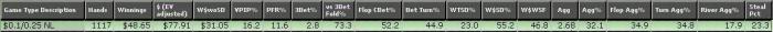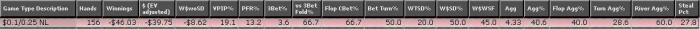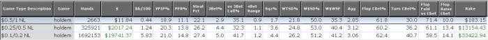 Согласен. Это не очень хорошо, но и, на мой взгляд, не так критично как дыры в постфлопе. -- С год назад видел статы AlexGr нл20 айпокера, он играл с довольно большим разрывом ВПИП\ПФР. Однако с год назад. Украшу свой серый блог его статами, может быть они принесут мне удачу