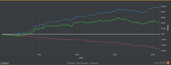 $0.523. Не рейзю ставки фишей в 2 цента с средне-слабыми руками , тем самым проиграл 21 бб раздача с KJo сквиз на бб , кол донка 30% пота с 2 оверкартами , попадания в тп с 3 кикером и колл 2 центов , после выхода А мне пришлось выкинуть , я дал ему шансы банка.